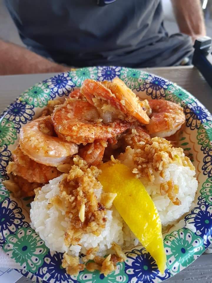 A short trip up the road we arrived in Haleiwa and came across foodie heaven! The North Shore food trucks! It was only 11.30am but we knew we had to stop for lunch especially when we saw the famous Giovanni’s Shrimp Truck! The smell was amazing and as Im not a shrimp fan I ordered some shave ice and fresh pineapple! OMG the pineapple in Hawaii is amazing! Full of flavour and juice and nothing we’ll ever get at home. Same was said about the Giovanni’s Shrimp, Trent said it was the best shrimp he had ever tasted! We arrived at the right time as by 12pm the place was packed but they still managed to pump the orders out quickly.