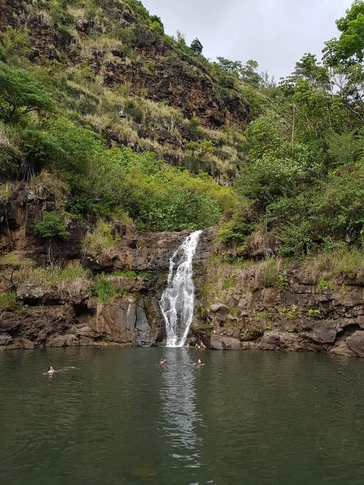 A great place to stop was Waimea Falls. A large waterfall with plenty of swimming room located in the lush botanical gardens in Waimea Falls Park. The walk to the waterfall once you pay the $18 p.p entry fee is 1.6km and is a great easy walk. Once you reach the falls there are lifeguards who hand everyone a life vest even if you can swim – no life vest = no swimming. We loved it, very relaxing.