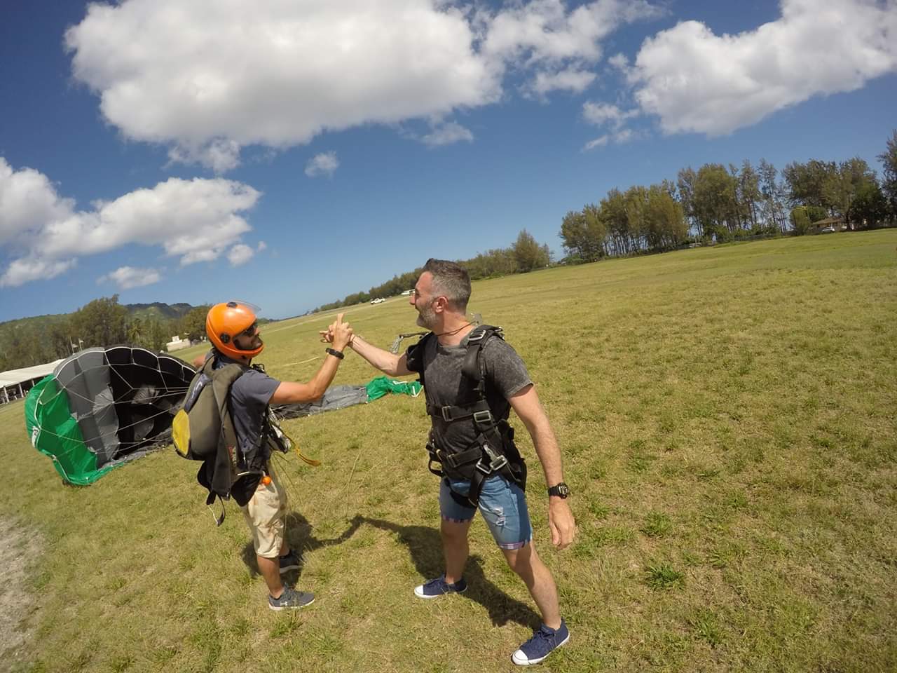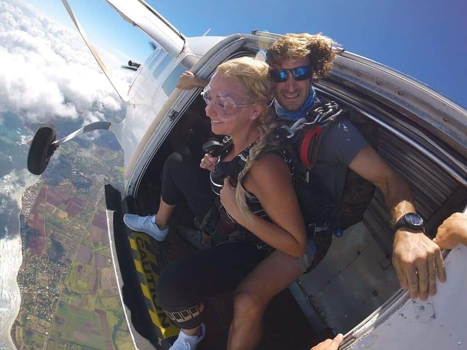 We arrived at Waialua on the North Shore and the vibe was so chilled and relaxed, so relaxed that these standards wouldn’t have passed in Australia. Instructor’s jumping out of planes bare foot, no jumpsuits to be worn by anyone and some instructors didn’t even bother to wear helmets. I liked the more relaxed feel though. Risk taker!